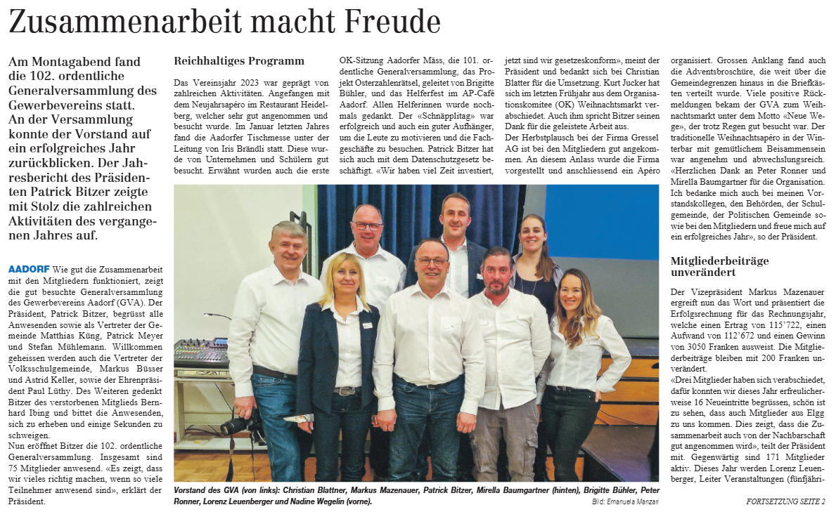 Besten Dank an die Redaktion der Elgger/Aadorfer Zeitung fürs veröffentlichen!